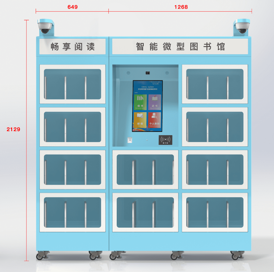 微型图书柜是一种基于RFID技术的图书自助借还延伸服务的智能终端系统。该系统可实现在无工作人员值守和协助的情况下,读者24小时自助借阅和归还图书,并且系统自助记录图书流通数据,自助提醒等一体化管理服务的功能。