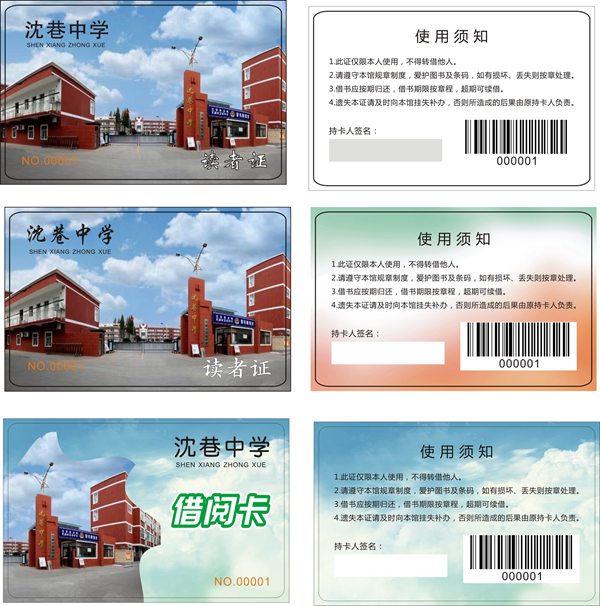 借书卡:需单位提供背景图片,我们负责设计经单位审核确认后开始制作