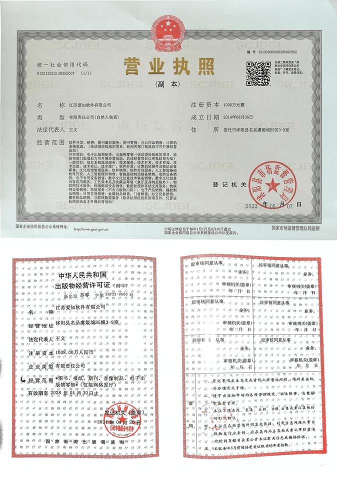 营业执照&出版物经营许可证